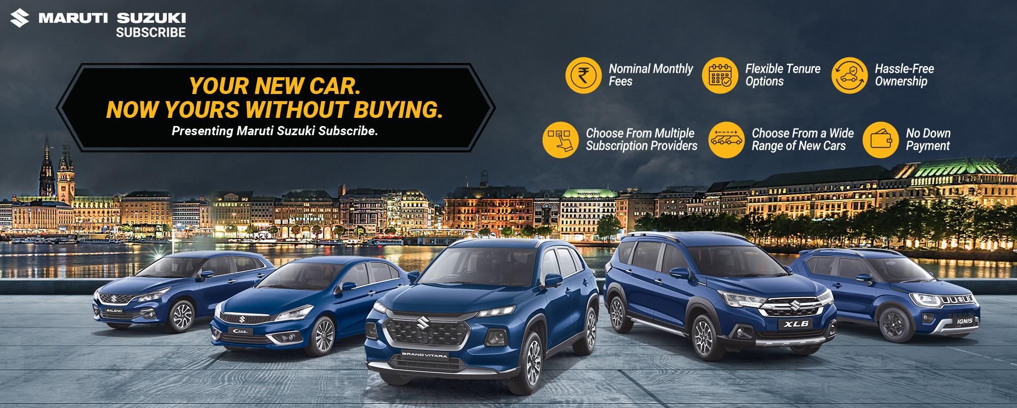 Located in Hyderabad, Popular Vehicles and Services Limited offers a plethora of options of Nexa cars for Maruti Suzuki Subscribe. You can choose your desired Maruti Suzuki car and drive it home at nominal monthly fees for a variety of flexible tenure periods. Whether you prefer Hatchback, Sedan, SUV or even MUV you are sure to find it at Popular Vehicles and Services Limited, with an easy Maruti Suzuki Subscribe plan.